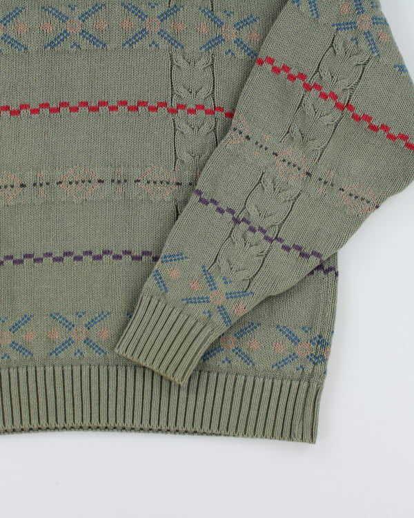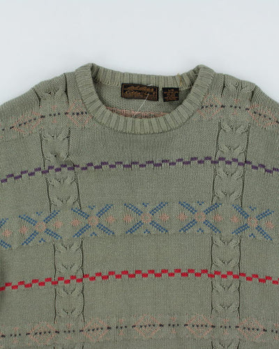 Vintage 80s Eddie Bauer Patterned Green Jumper - L