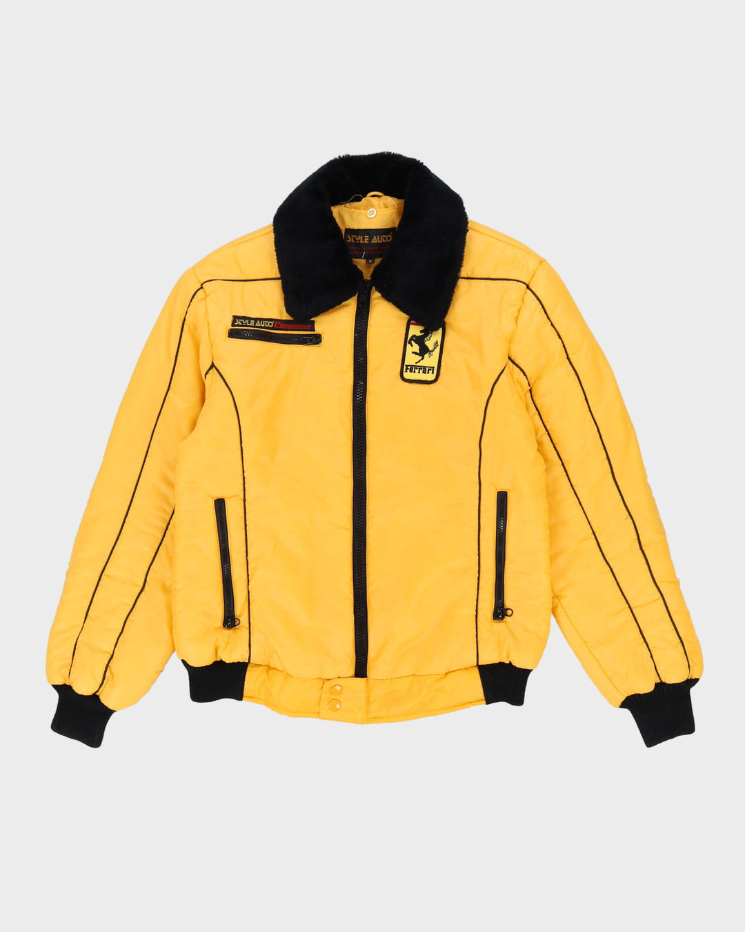 Vintage 80s Ferrari Style Auto Yellow Padded Windbreaker Jacket - M