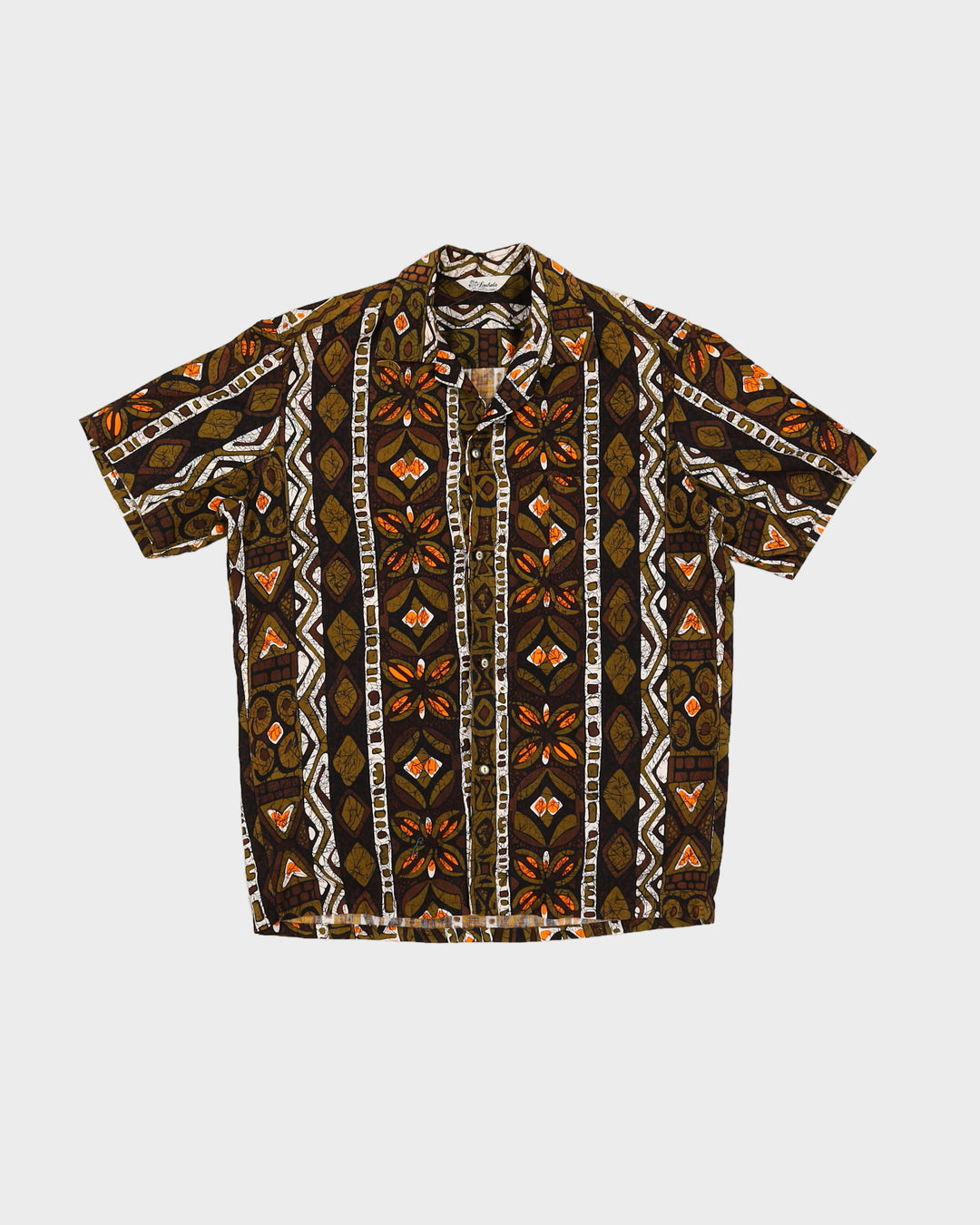 Vintage 80s Lauhala Green / Brown Hawaiian Shirt - S