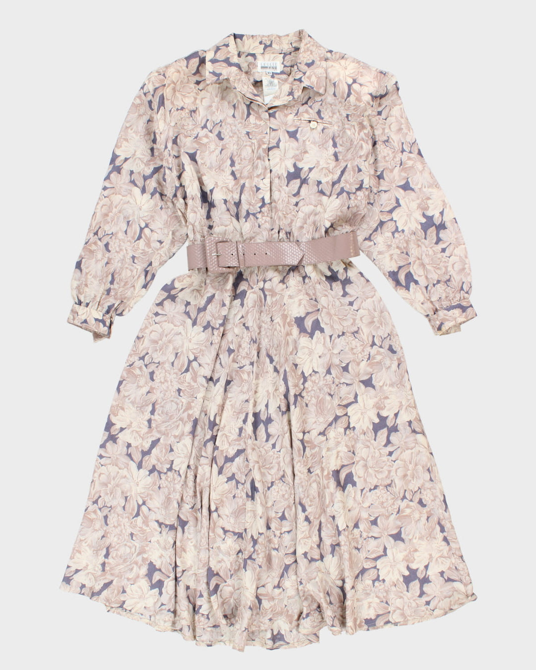 Vintage 80s Leslie Fay Long Sleeve Floral Dress With Belt - M