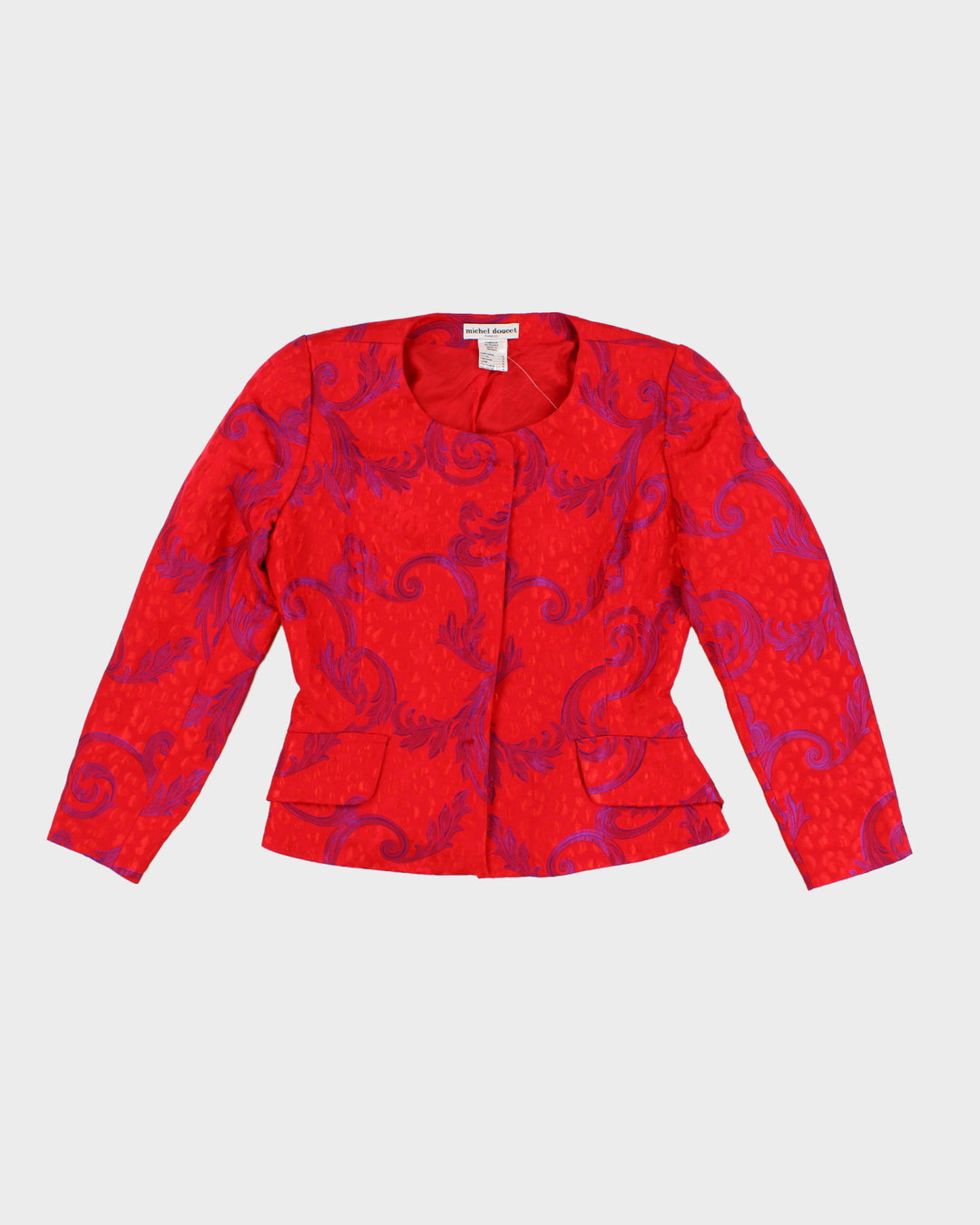 Vintage 80s Michel Doucet Red Patterned Cropped Blazer - M
