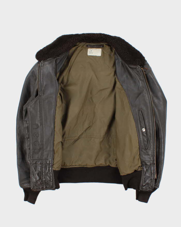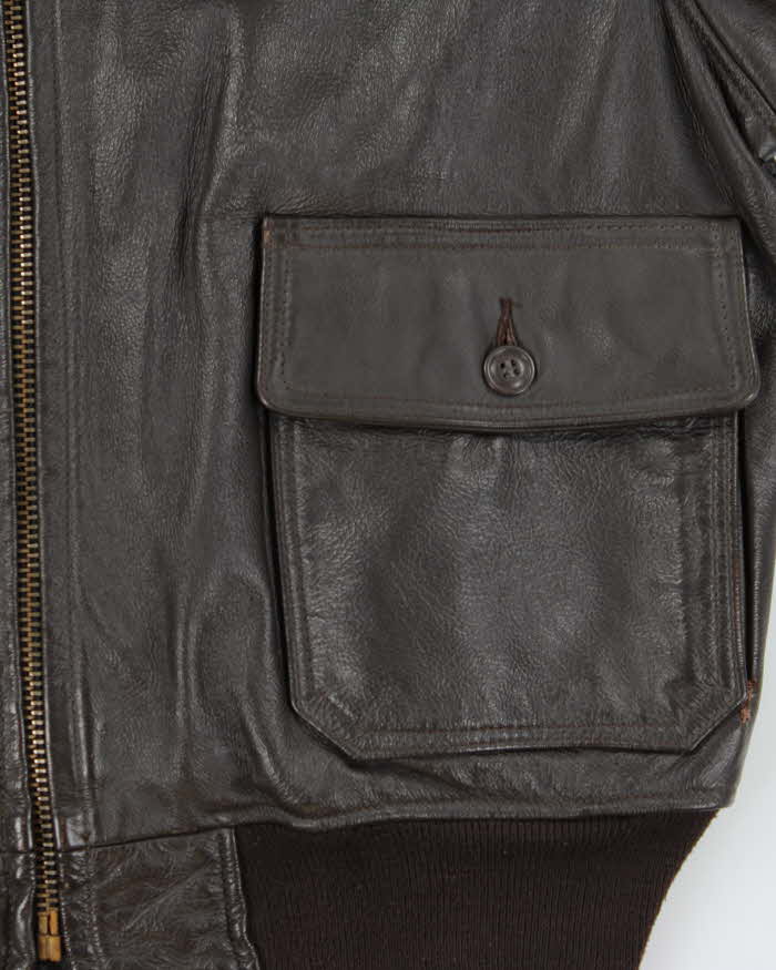 Vintage 80s Orchard Motorcycle US Navy G-1 Brown Leather Flight Jacket - L
