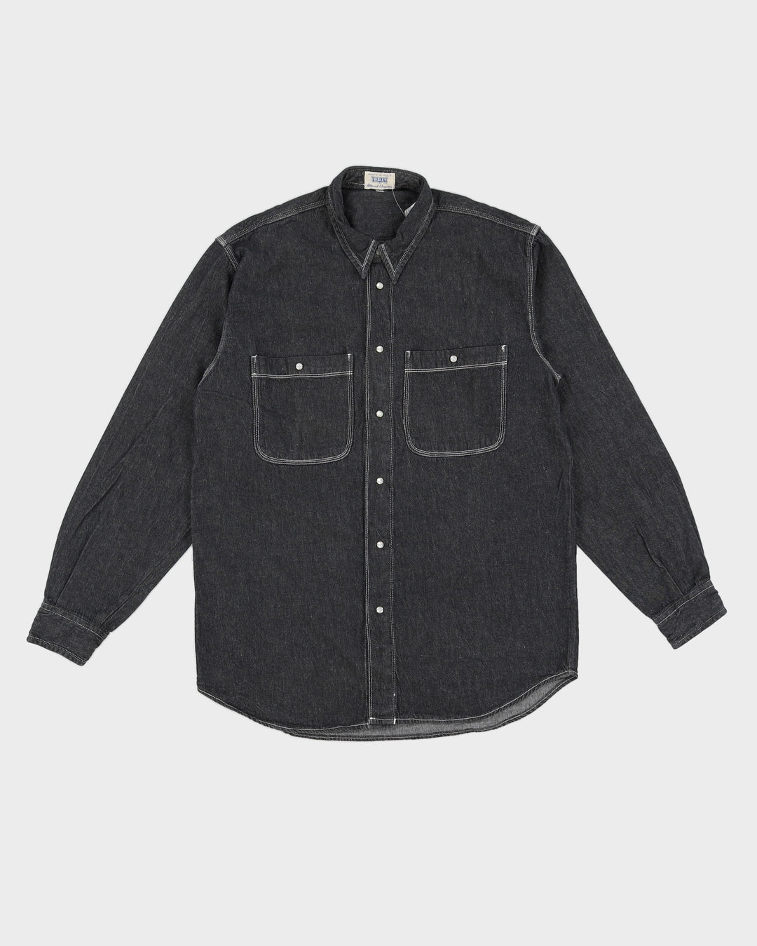 Vintage 80s Sisley Dark Grey Denim Shirt - M