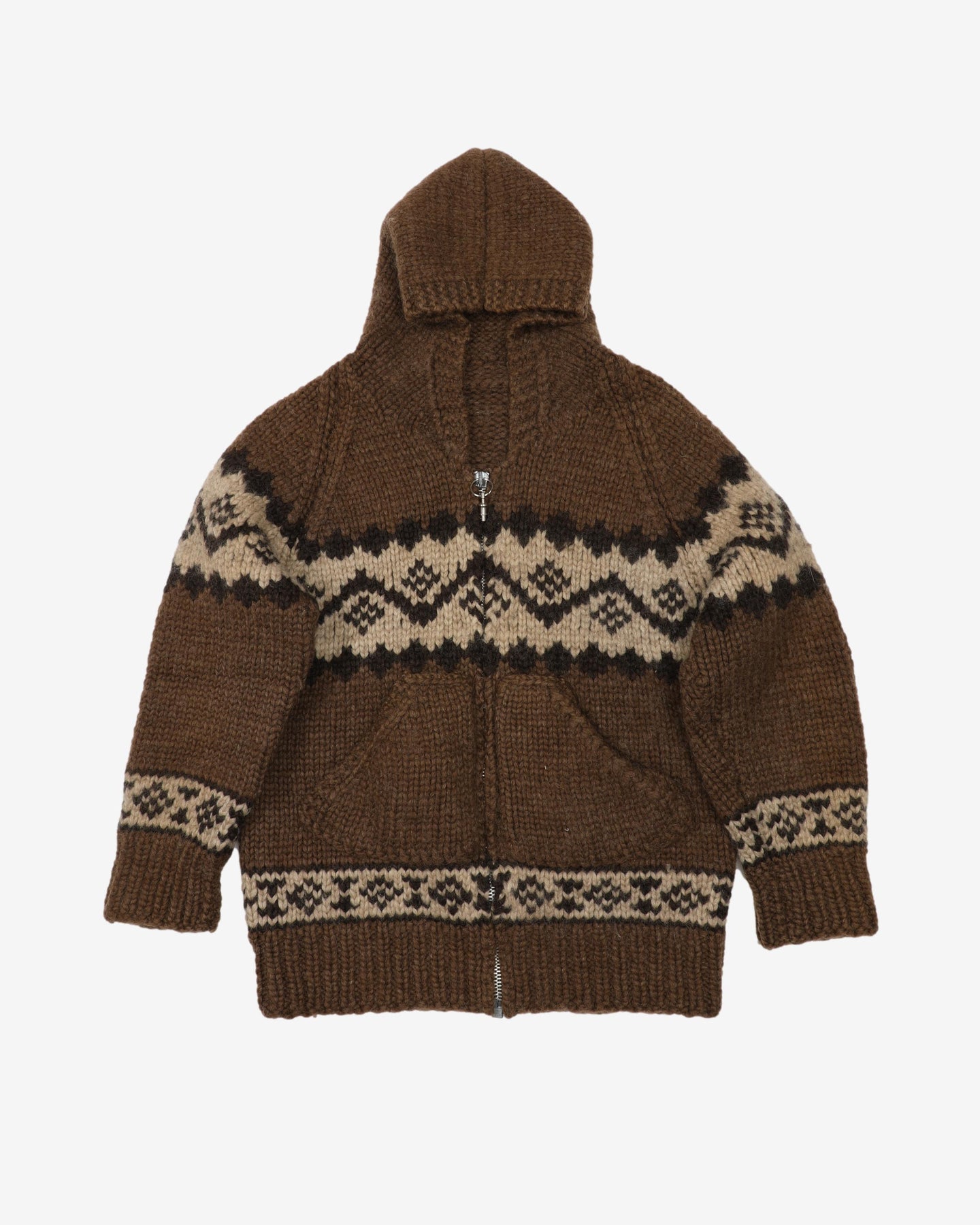 Vintage 80s Tundra Brown Knitted Zip-Up Hooded Wool Sweatshirt - M