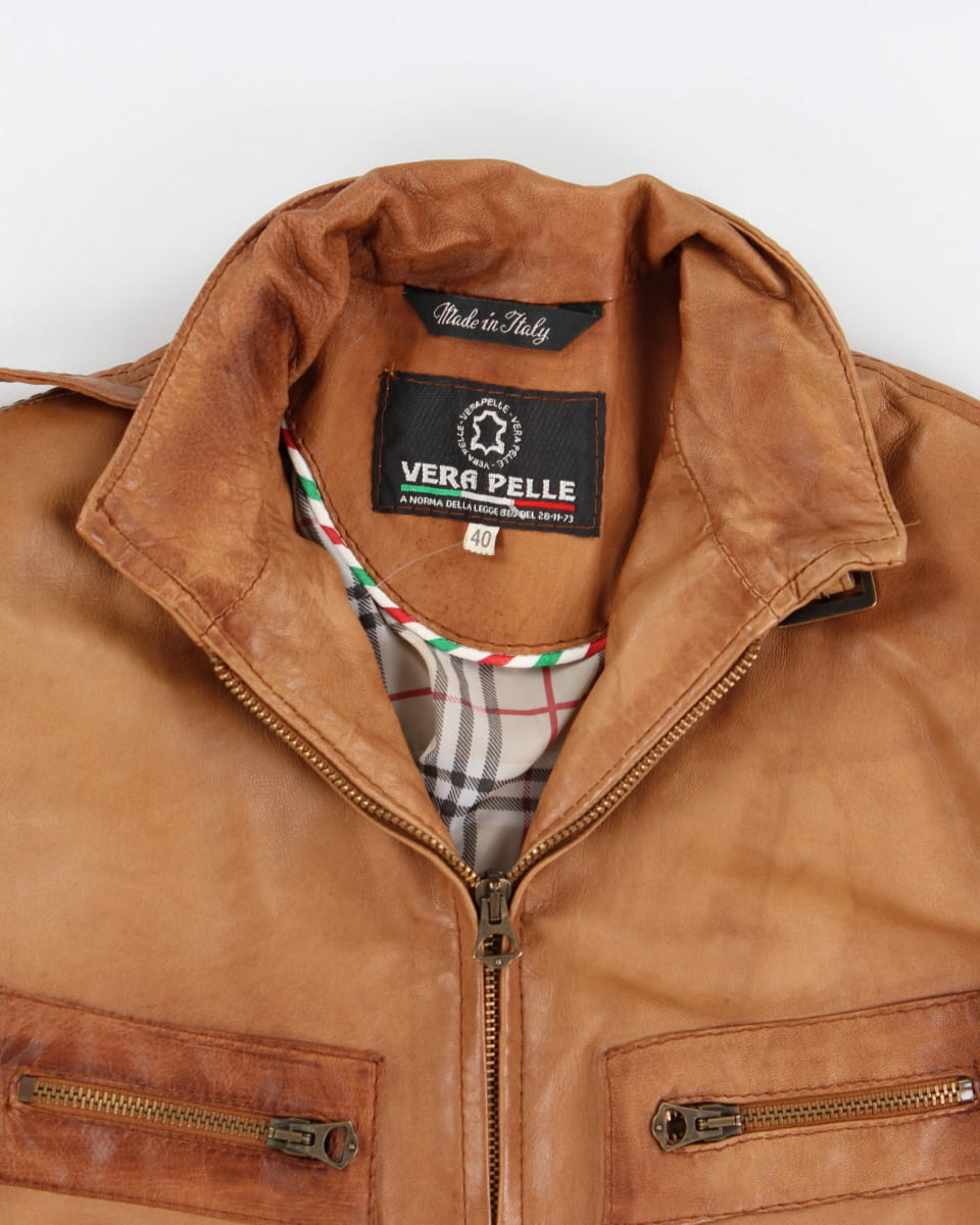 Vintage 80s Vera Pelle Brown Fitted Leather Jacket - XS/S