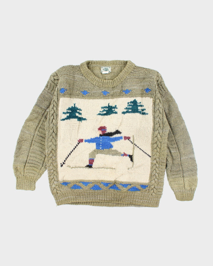 Vintage 80's Wool Heavyweight Chunky Patterned Knit Jumper - L