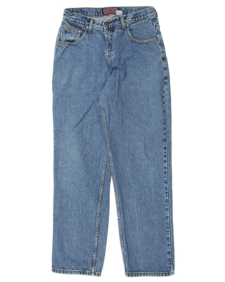 Vintage 90s 212 high waist jeans in blue with five pockets and zip fly.