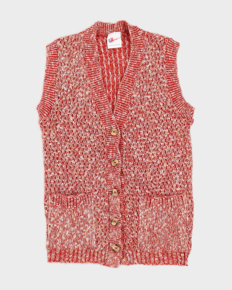 Vintage 90s Americana Red Knit Sleeveless Cardigan - M