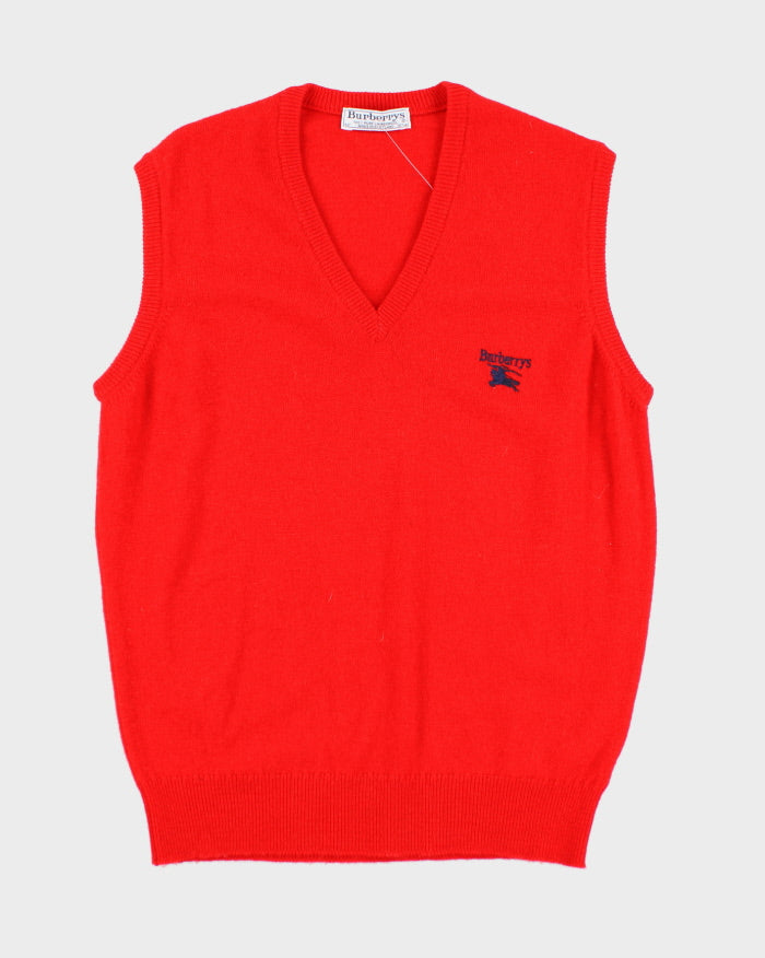 Vintage 90's Burberry Lambswool Knitted V-Neck Tank Jumper - L