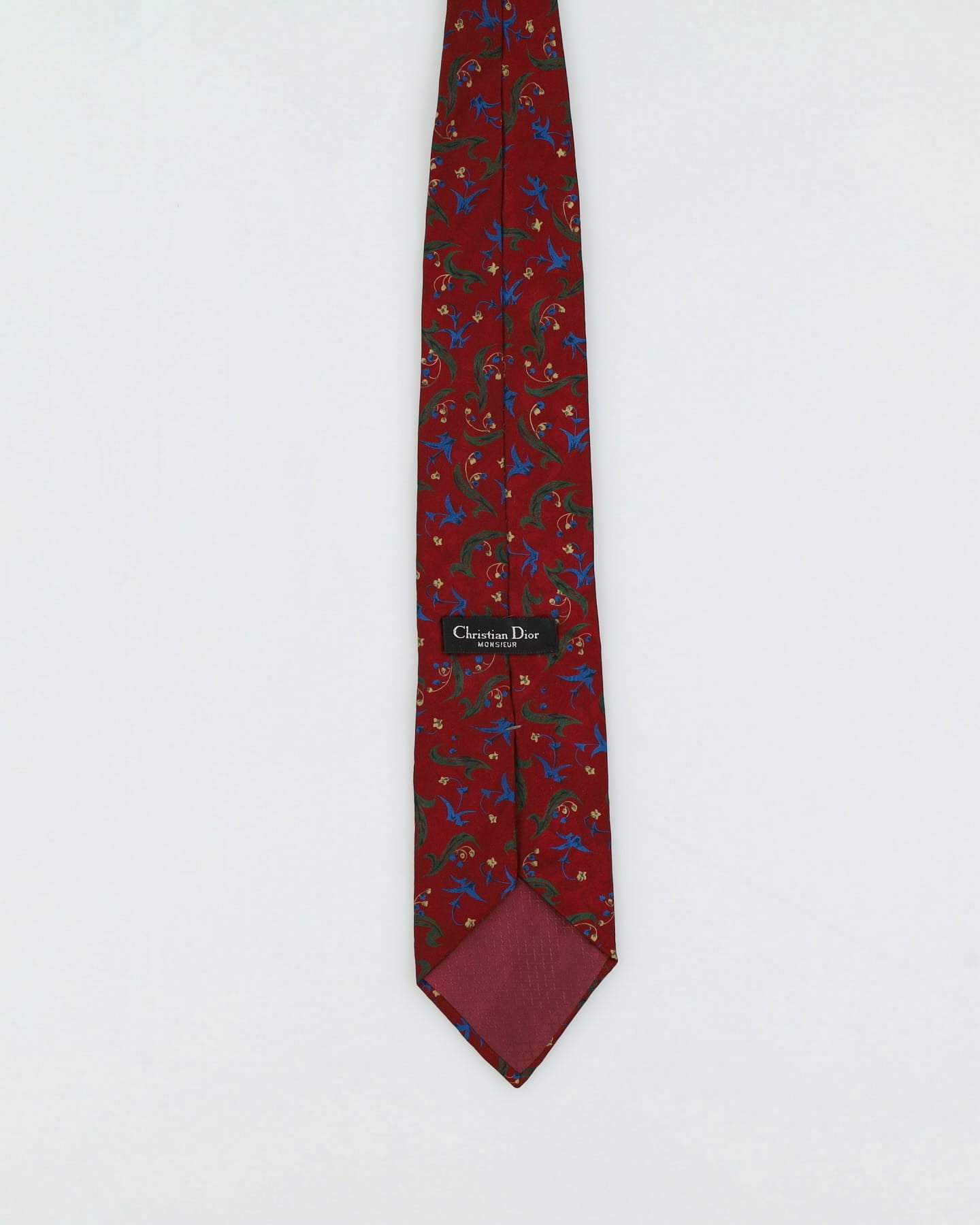 Vintage 90s Christian Dior Red / Green / Blue Patterned Tie