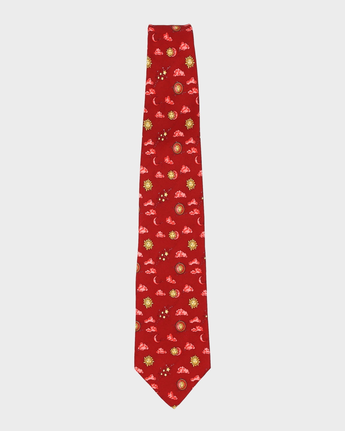 Vintage 90s Christian Dior Red Sun & Moon Patterned Tie