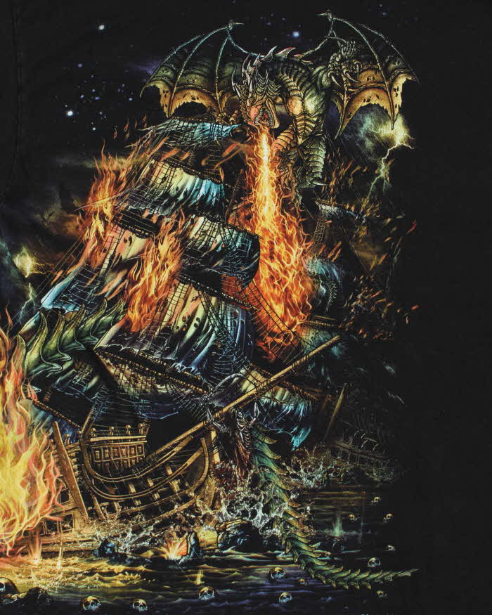 Vintage 90s Dragon Graphic Black Crewneck T-Shirt - XL