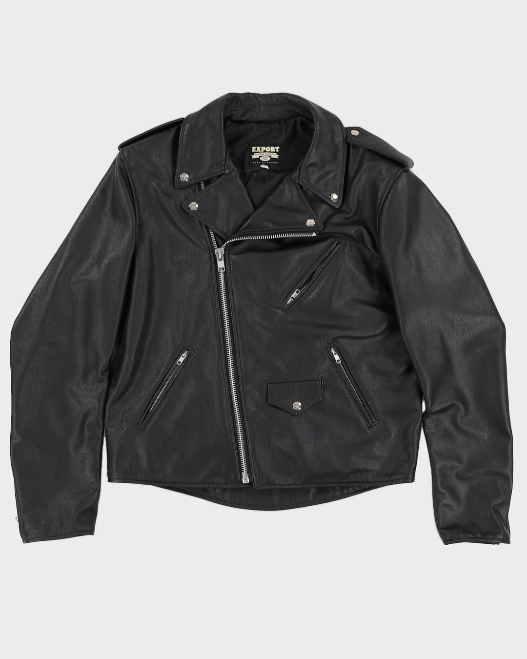 Vintage 90s Export Black Leather Jack Daniels Jacket - XXL