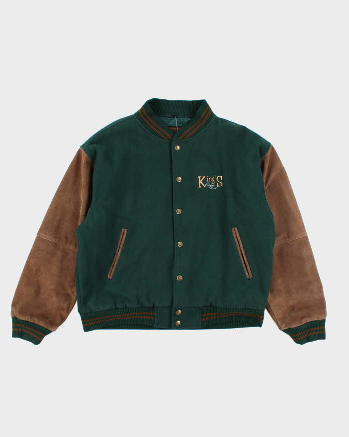 Vintage 90's Heavyweight Suede Embroidered Varsity Jacket - XL