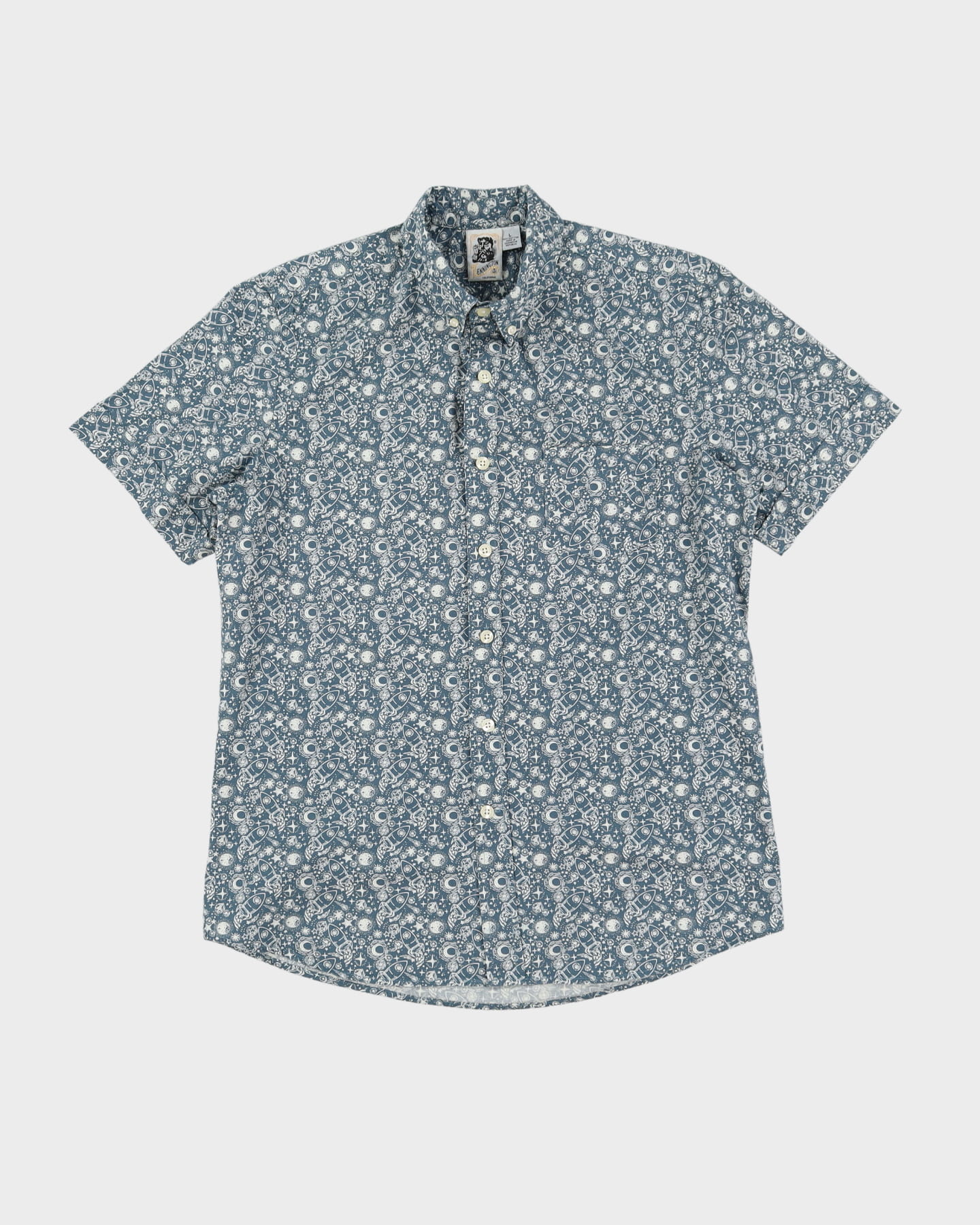 Vintage 90s Kennington Blue Patterned Short-Sleeve Shirt - L