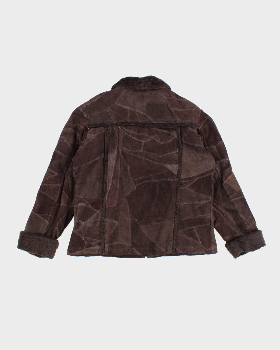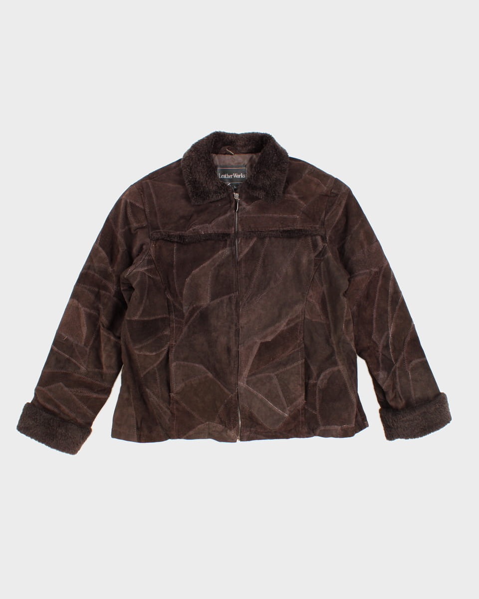 Vintage 90s Leather Works Faux Fur Collared Patchwork Jacket - L