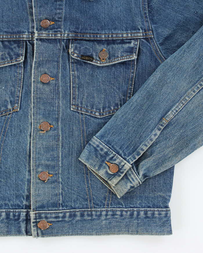 Vintage 90's Leopard Print Collar Dark Wash Denim Jacket - M