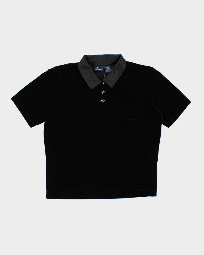 Vintage 90s Liz Sport Velvet Quarter-button Blouse - M