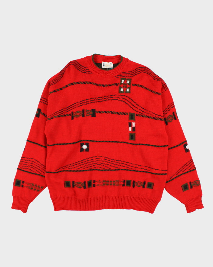 Vintage 90's London Fog Chunky Patterned Knit Jumper - XL