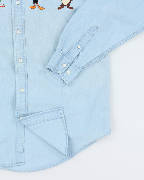 Vintage 90's Looney Tunes Embroidered Long-sleeve Denim Shirt - M