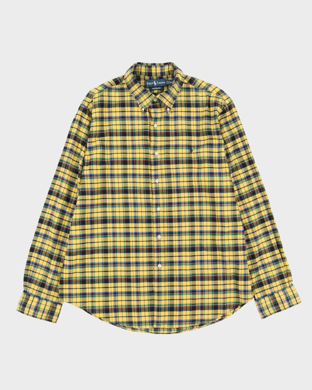 Vintage 90s Ralph Lauren Yellow Check Patterned Flannel Shirt - XL