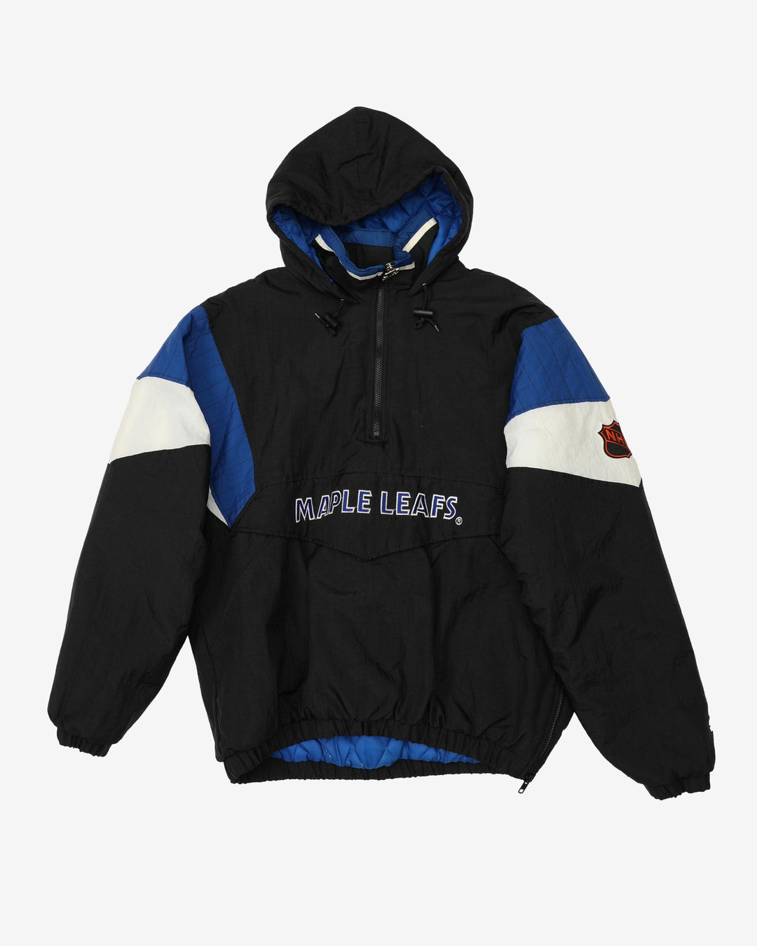 Vintage 90s Starter Toronto Maple Leafs Black Hooded Quarter-Zip Jacket - L