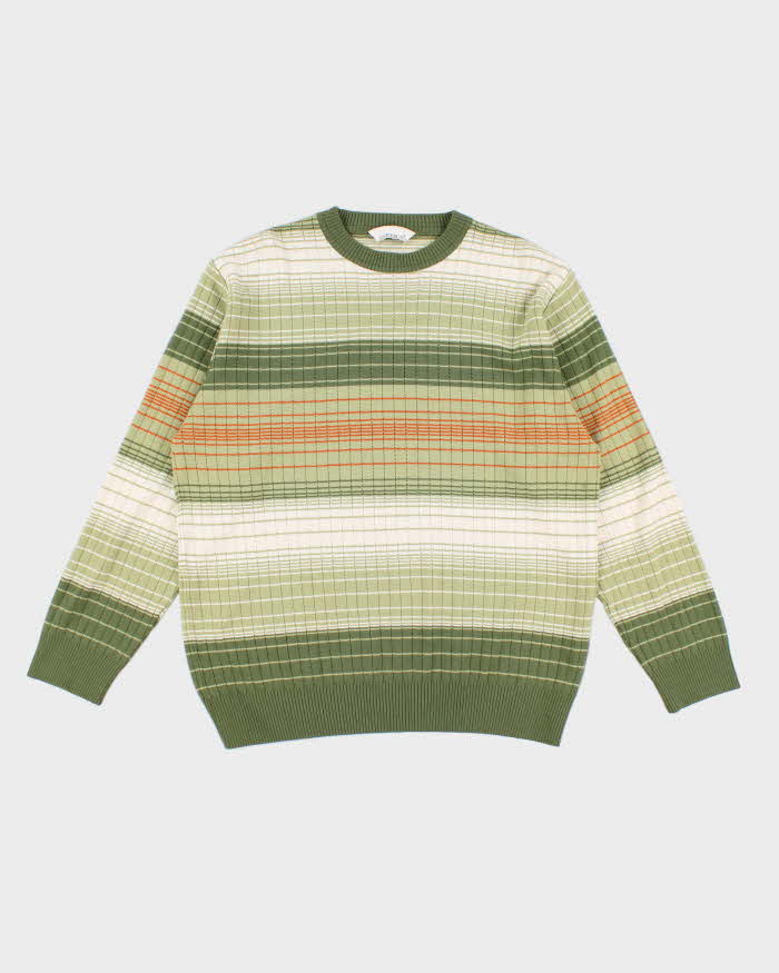 Vintage 90s Striped Green Wool Blend Jumper - XL