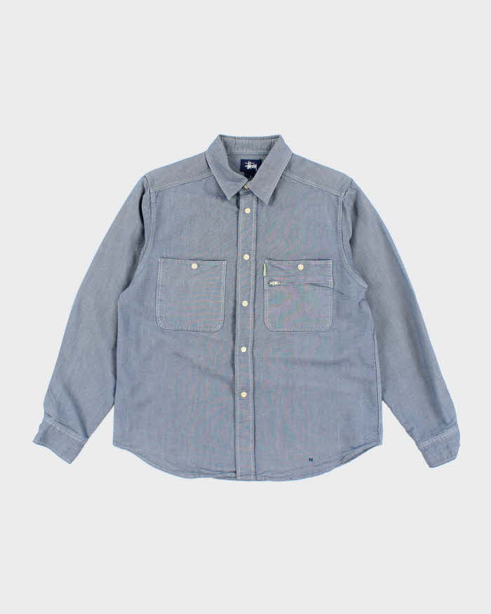 Vintage 90's Stussy Snap Button Light Wash Denim Shirt - S