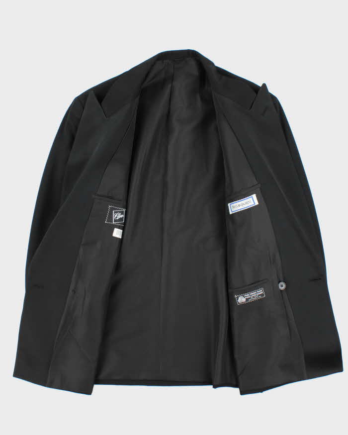 Vintage 90s Yves Saint Laurent Black Satin Detailed Wool Double Breasted Blazer - L