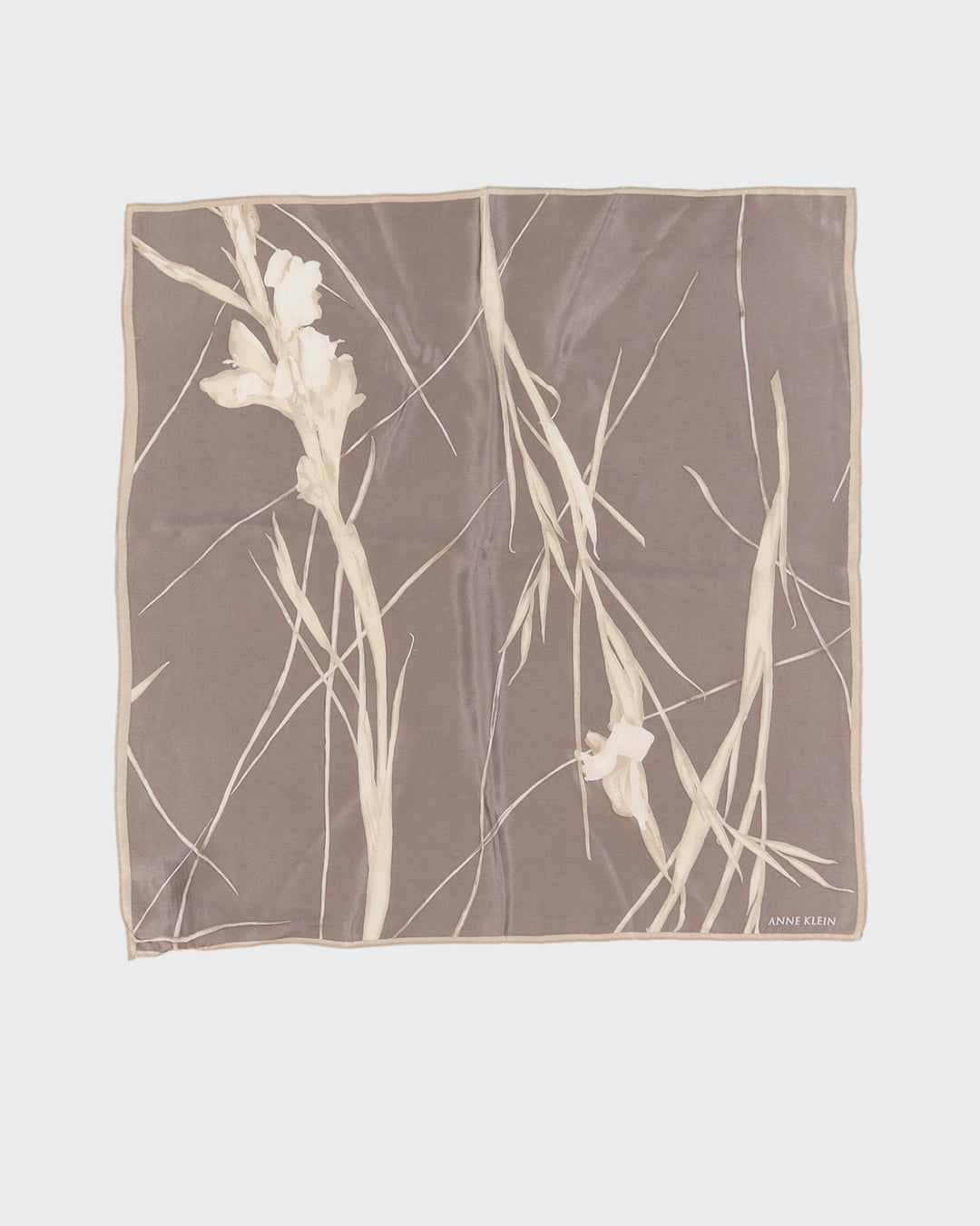 Vintage Anne Klein Grey Patterned Silk Scarf - One Size