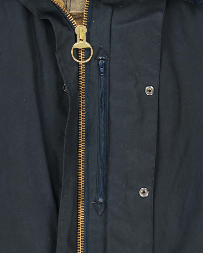 Vintage Barbour Classic Navy Border Tartan Lined Waxed Country Jacket - 3XL