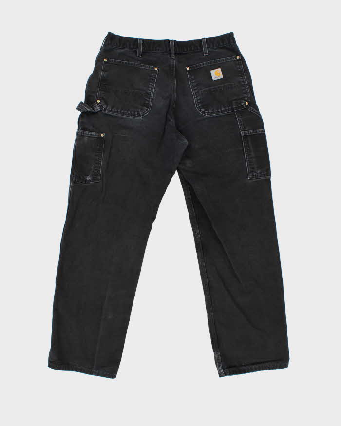 Vintage Carhartt B01 BLK Distressed Duck Canvas Double Front Loose Fit Carpenter Trousers - W34 L31