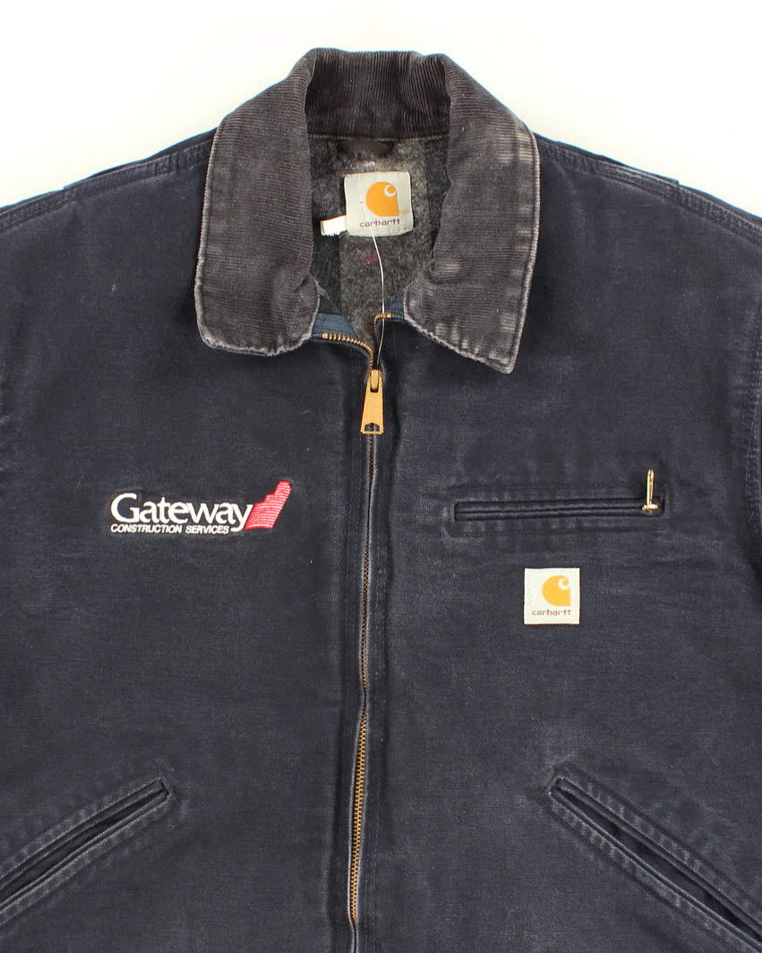 Vintage Carhartt Fleece Lined Navy Work Wear Jacket - L
