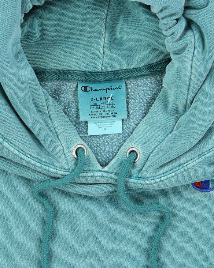 Vintage Champion Faded Green Embroidered Logo Hoodie - XL