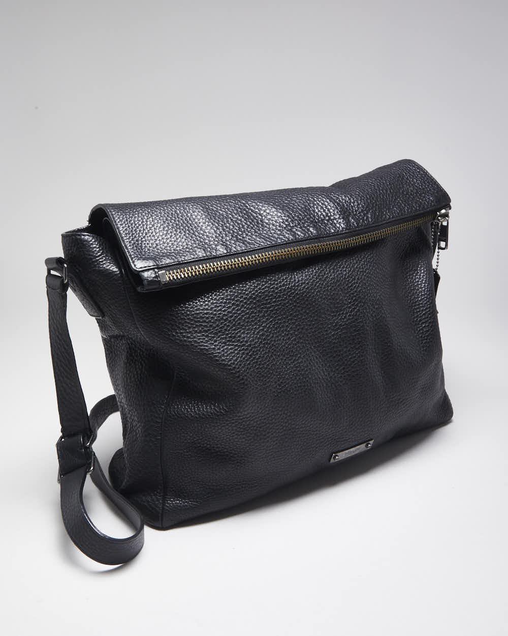 Vintage Coach Black Leather Crossbody Satchel Bag