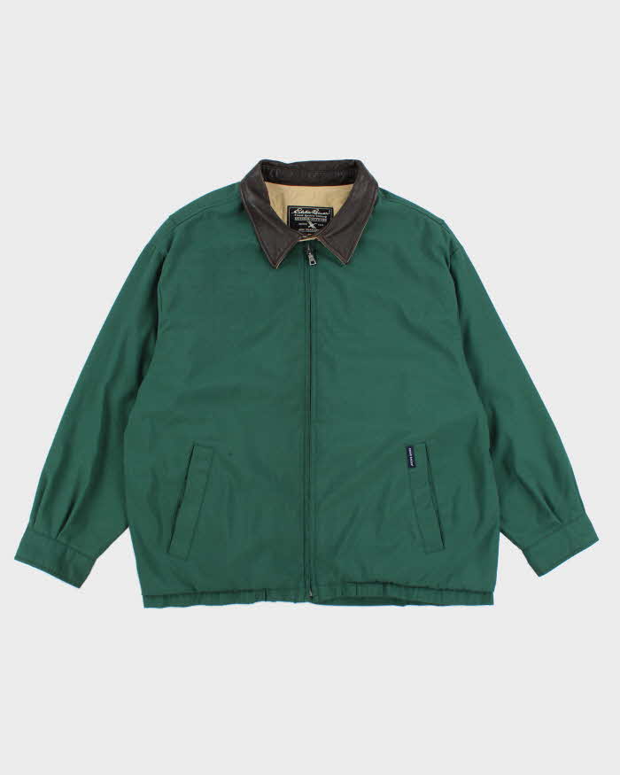 Vintage Eddie Bauer Green Zip Up Leather Collar Jacket - L