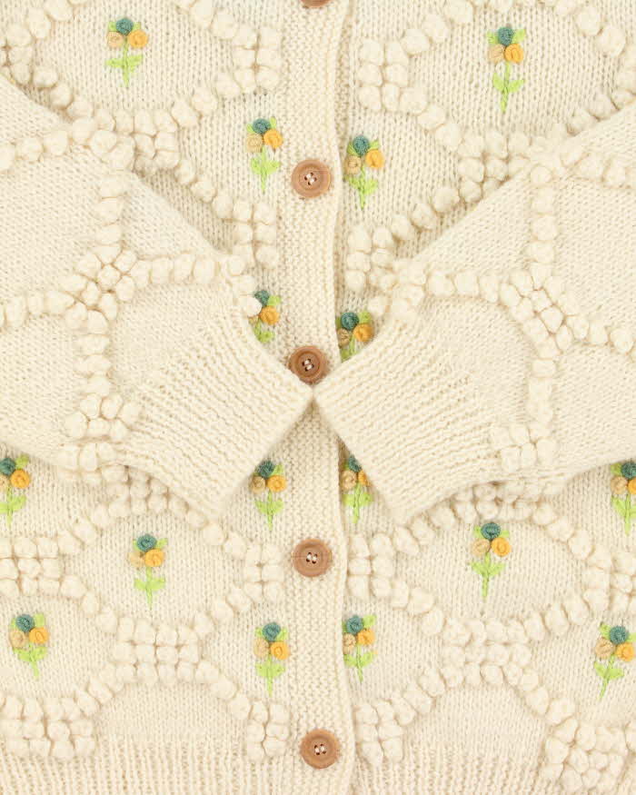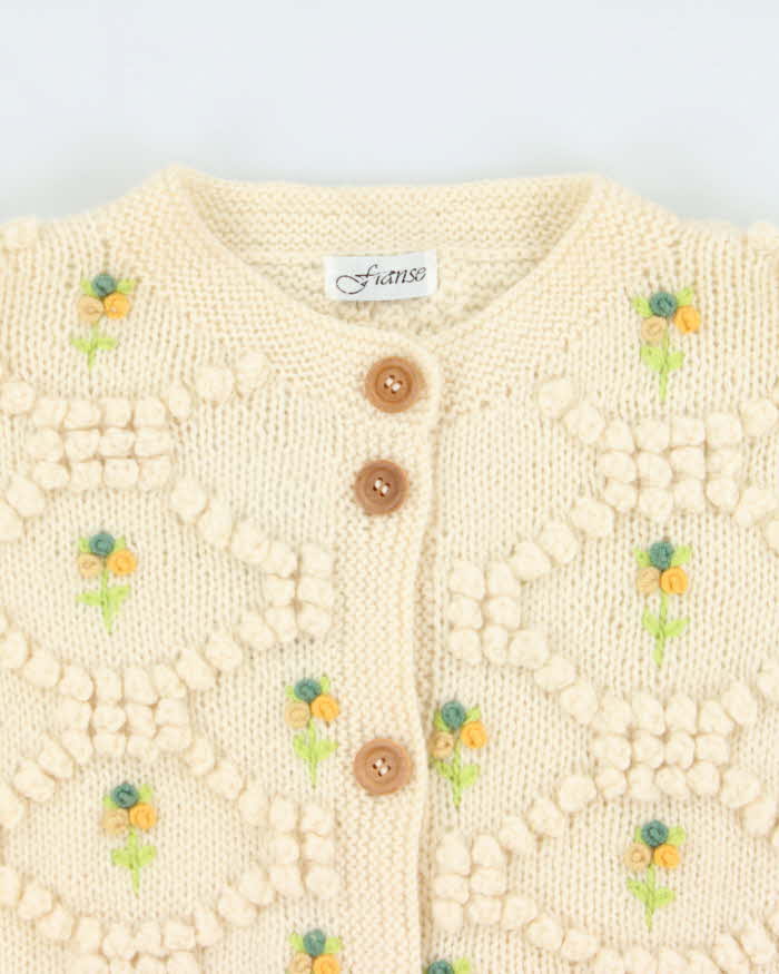 Vintage Franse Chunky Knit Applique Flower Wool Cardigan - M