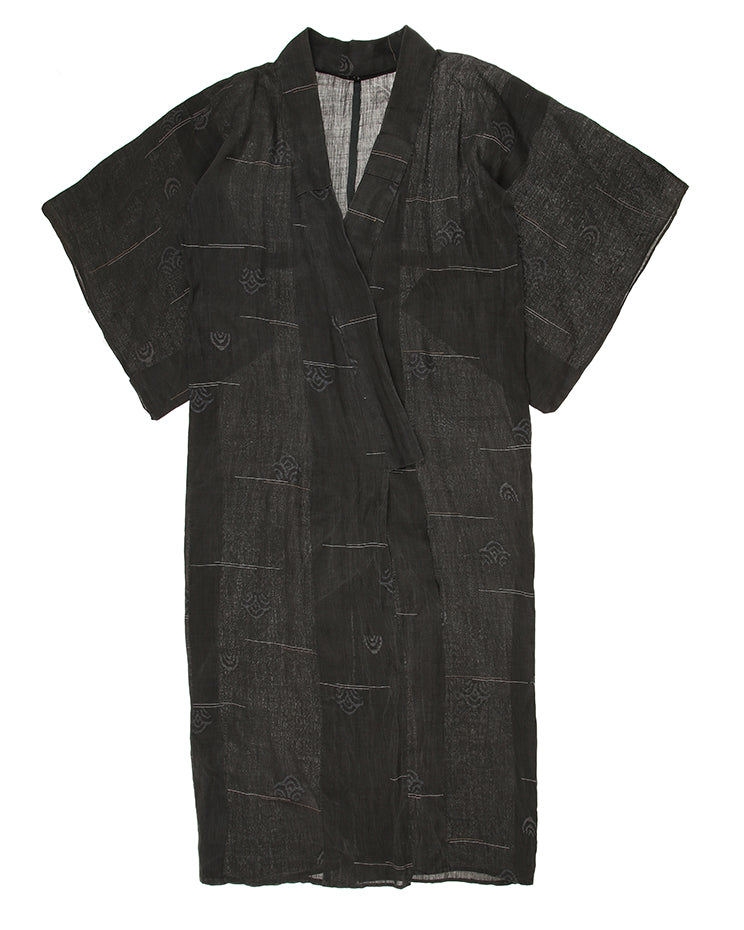 Vintage Grey And Charcoal Patterned Summer Yukata Kimono - L / XL