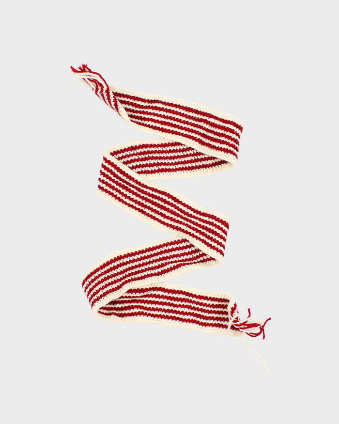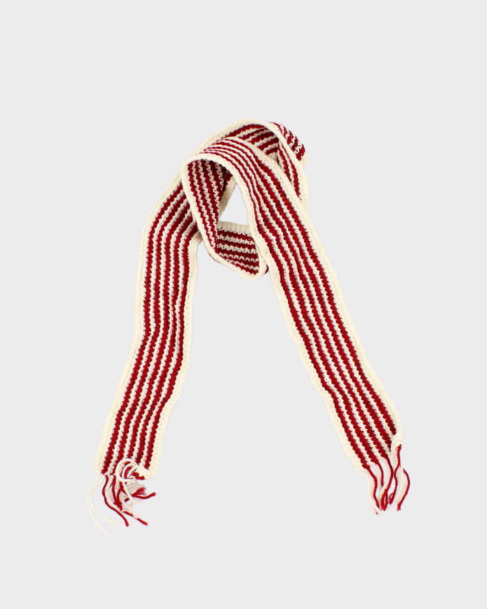 Vintage Hand Knit Red Striped Scarf