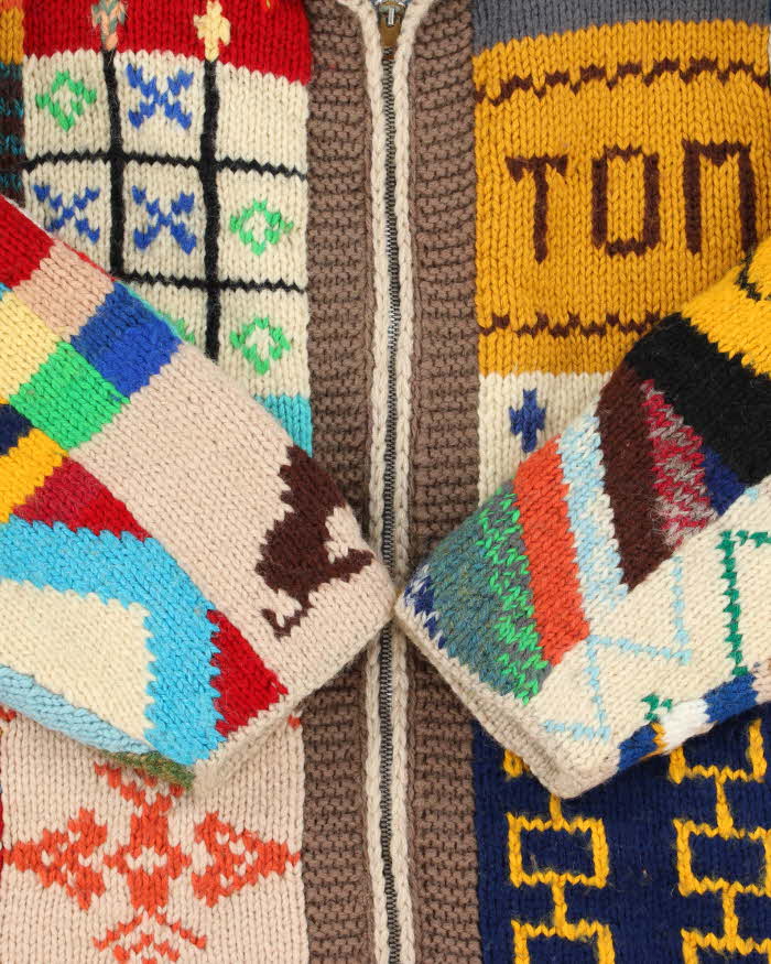 Vintage Handmade Knit Patchwork Heavyweight Chunky Zip-up Jumper - L