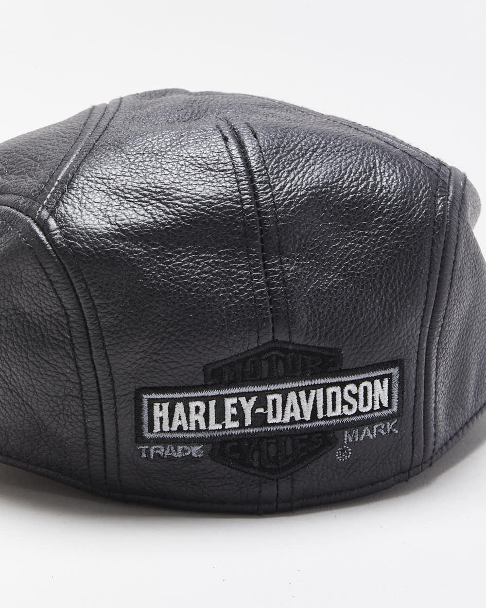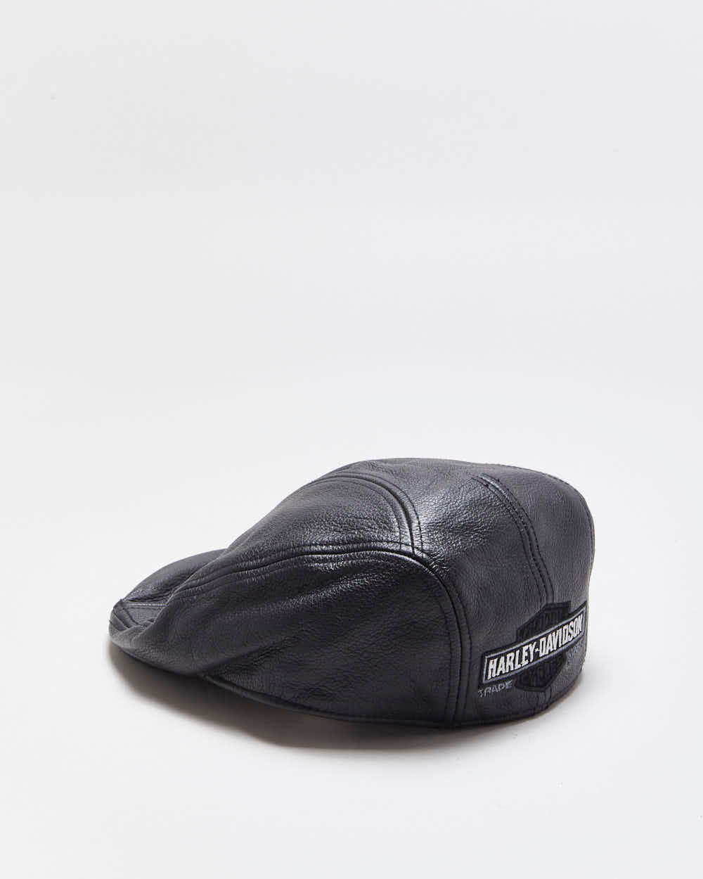 Vintage Harley Davidson Leather Biker Flat Cap - L