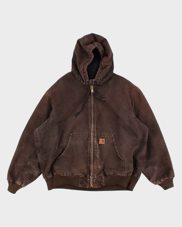 Vintage Men's Brown Carhartt Fleece Lined Hooded Jacket - XL