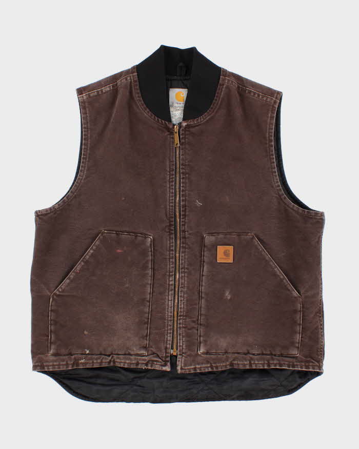 Vintage Men's Brown Carhartt Padded Zip Up Vest - L