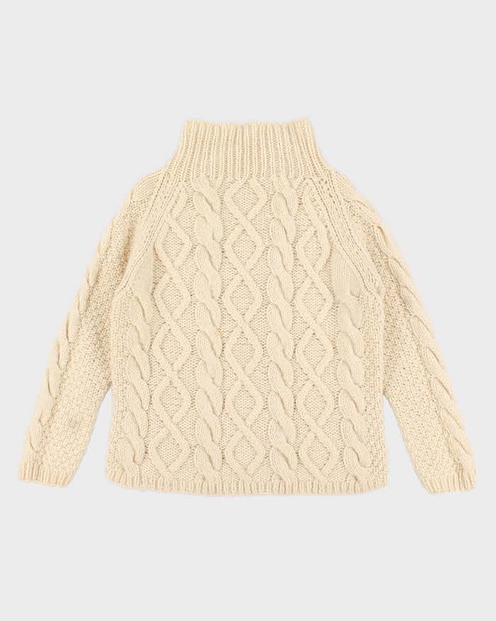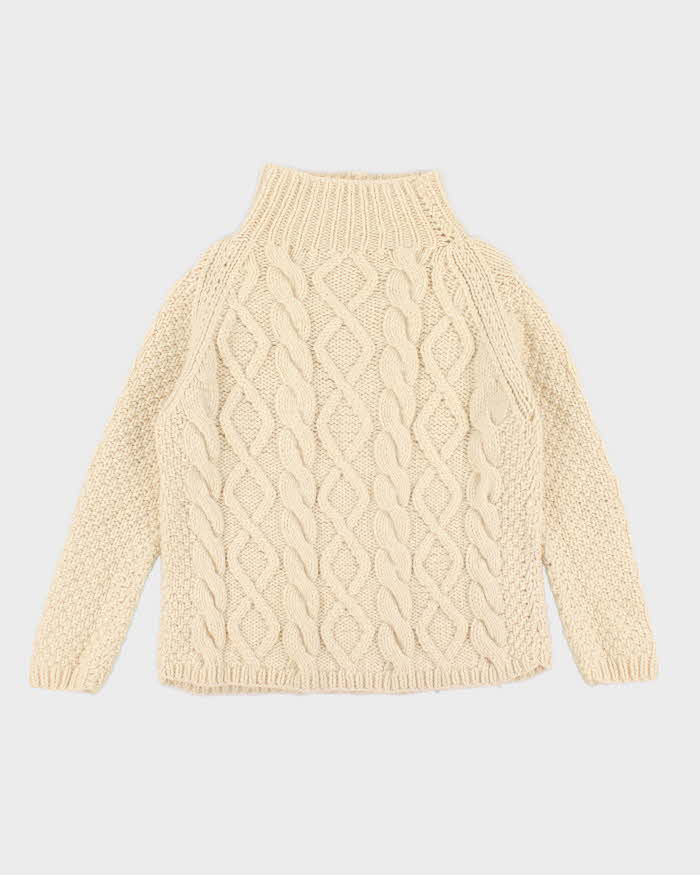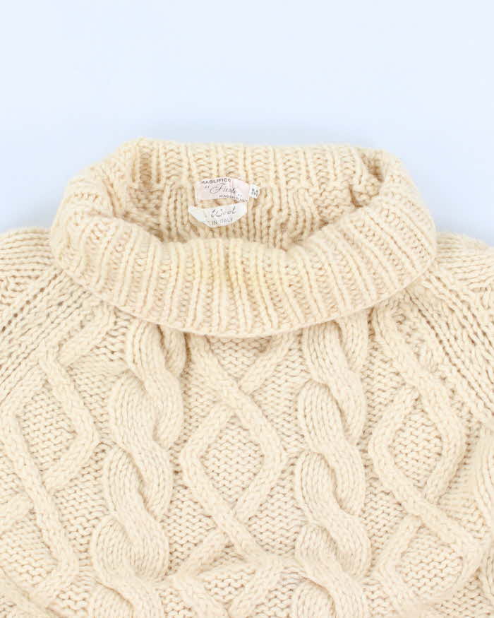 Vintage men's Cream Cable Knit Wool Turtle Neck Sweater - M