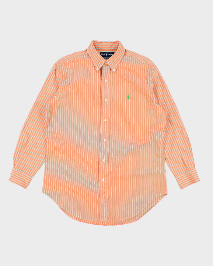 Vintage Men's Orange Ralph Lauren Stripped Shirt - M