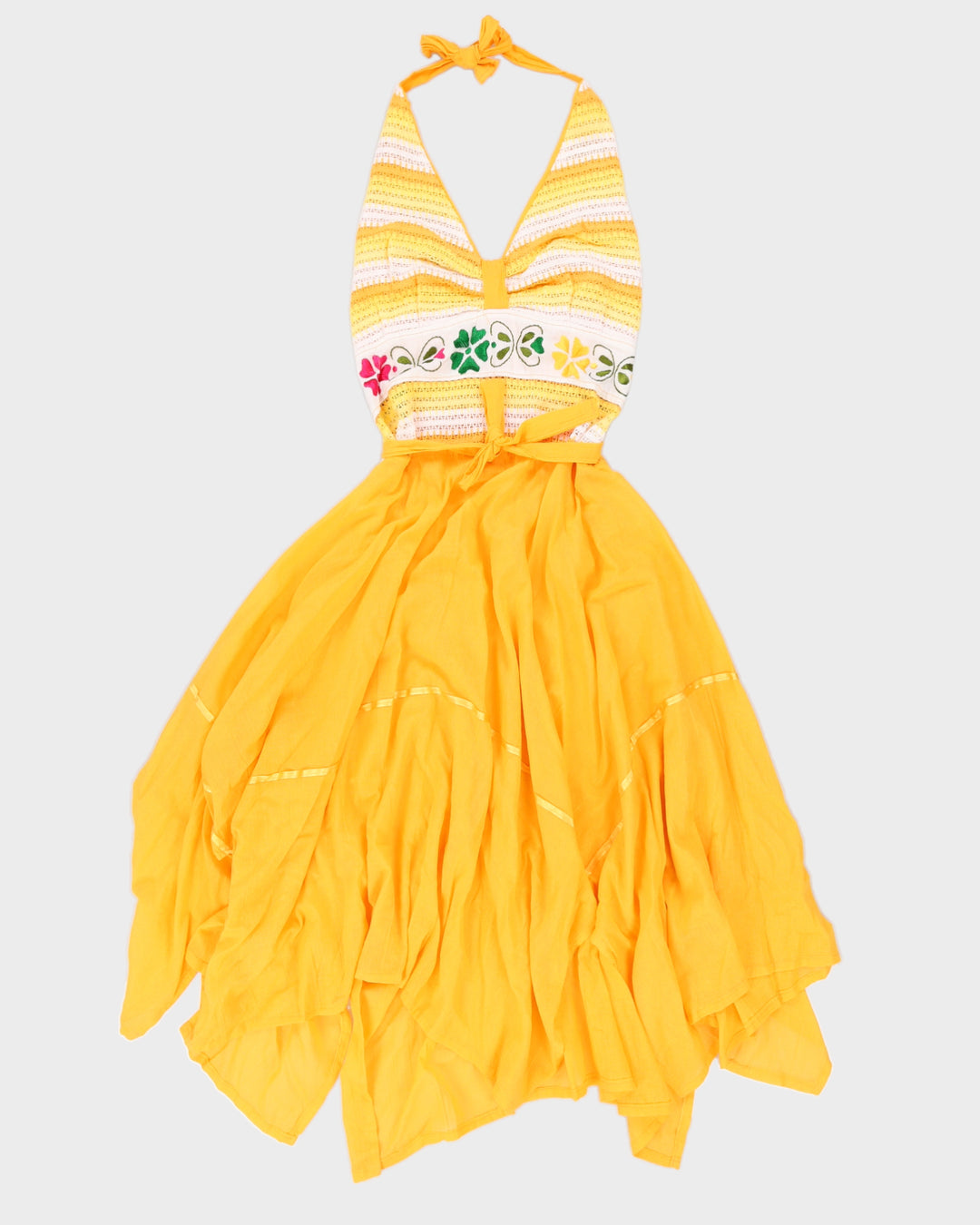 Vintage Orange Halterneck Cotton Crochet Dress - M
