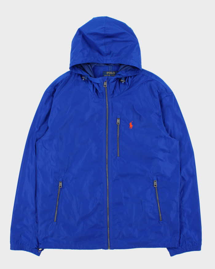 Vintage Polo Ralph Lauren Cobalt Blue Hooded Shell Windbreaker Jacket - M