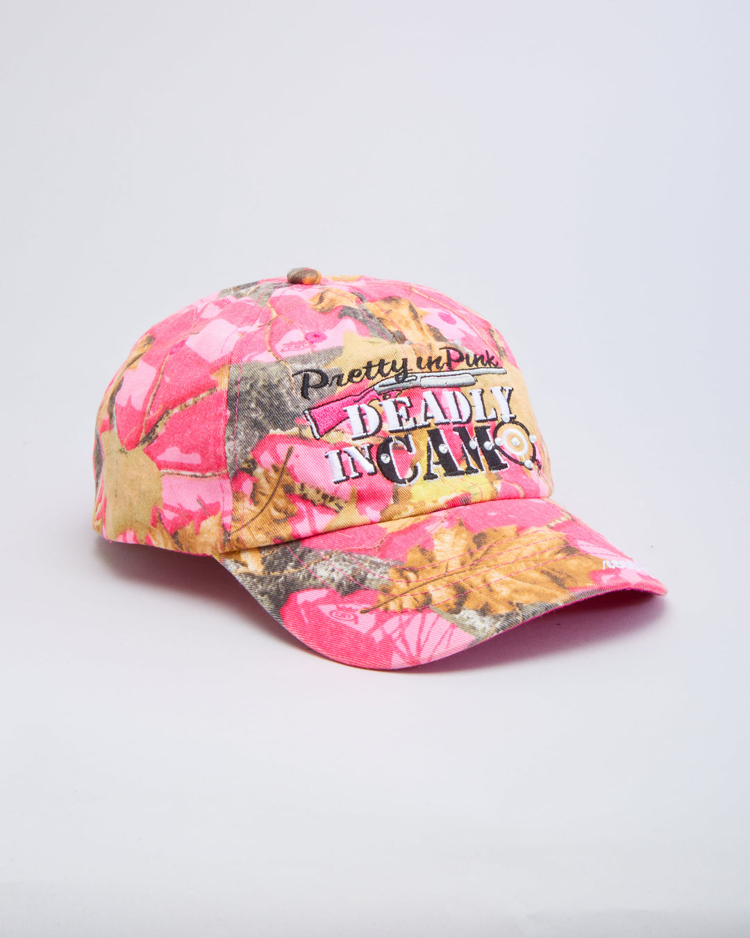 Pretty In Pink Deadly In Camo Slogan Pink Camouflage Baseball Cap / Hat