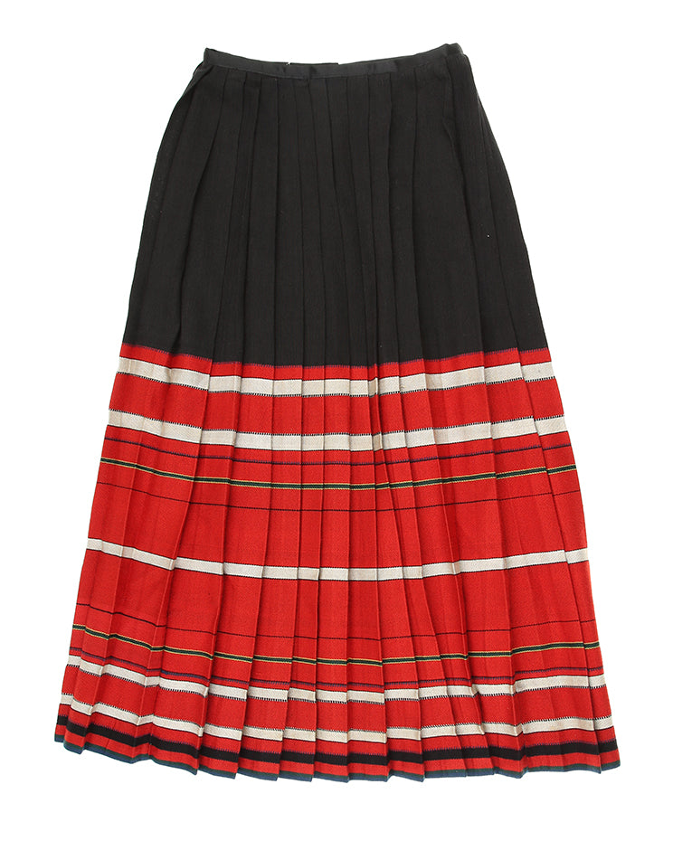 Vintage Red And Black Pleated Maxi Skirt - S / M