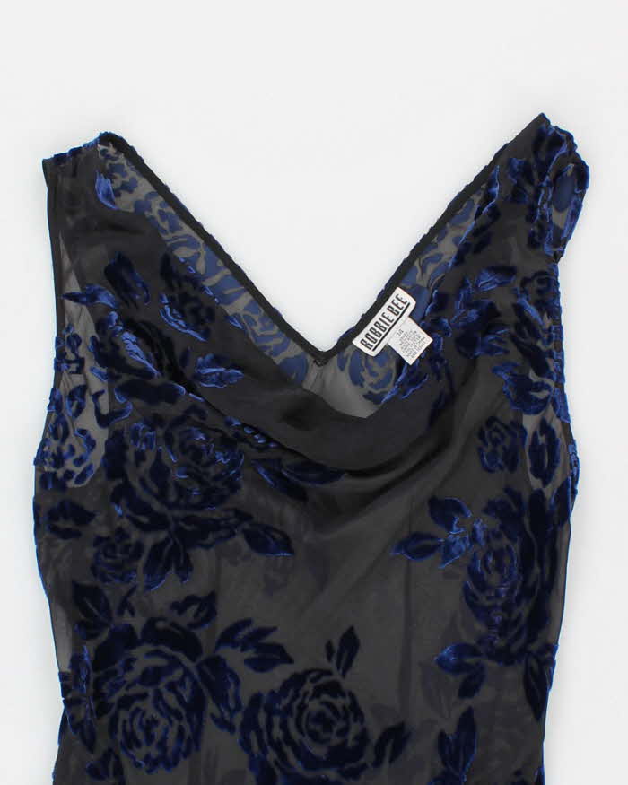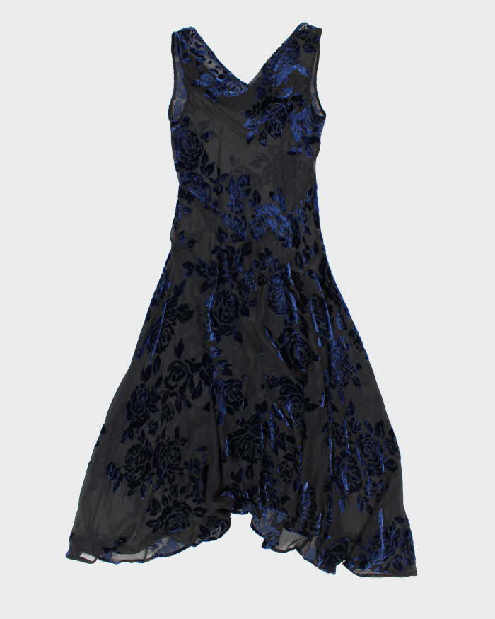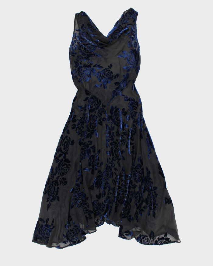 Vintage Silk Blend Velvet Rose Detailed Cowl Neck Dress - M